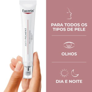 Eucerin Anti-Pigment Creme Clareador de Olheiras é um produto ideal para a redução e prevenção de qualquer tipo de olheira, formulado com Thiamidol, um ativo reconhecido pelos dermatologistas como o mais eficaz e o único comprovado por atuar na causa raiz das manchas. Sua fórmula também contêm Ácido Hialurônico, que suaviza bolsas e reduz linhas de expressão, Oligopeptídeos, que estimulam a produção de colágeno, e Pigmentos Refletores de Luz, que iluminam e uniformizam instantaneamente a área dos olhos.
